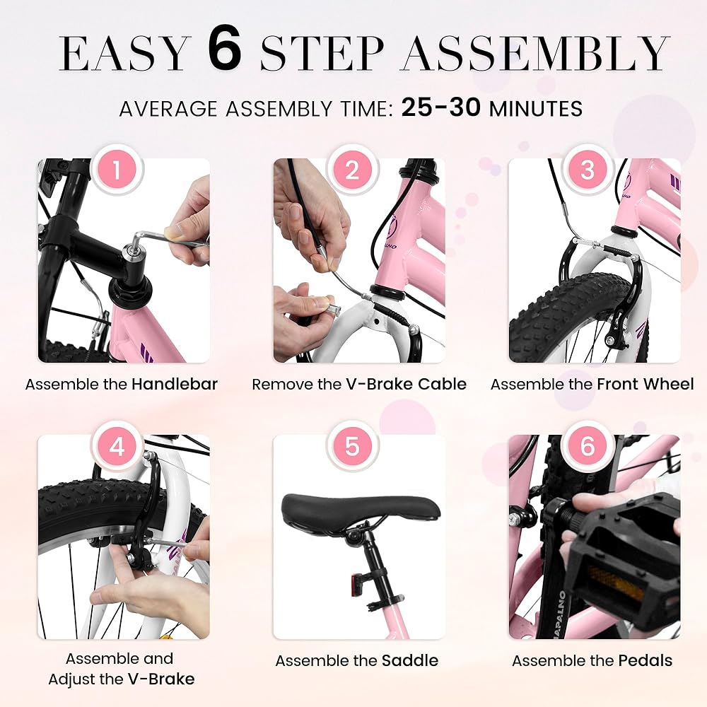 【85% Pre-Assembled】85% of the bike is already assembled. You will need to install the pedals, handlebars, saddle, front wheel, and inflate the tires. These will take about 20 minutes. We will provide bicycle manual and assembly video. Tips: This bicycle's stem differs from standard models. No parts are missing. The factory-provided manual may not match your model. Refer to the product page's installation video for accurate steps.