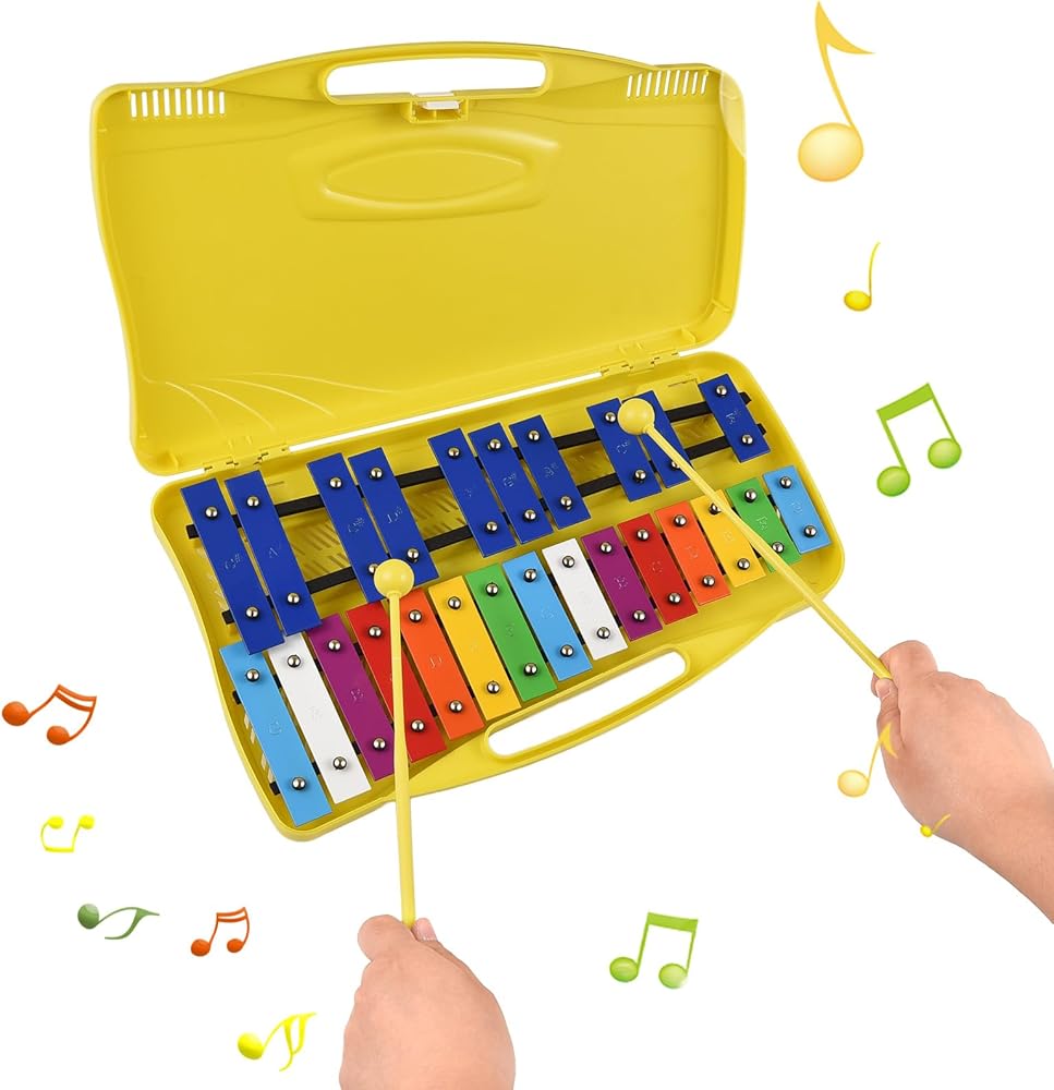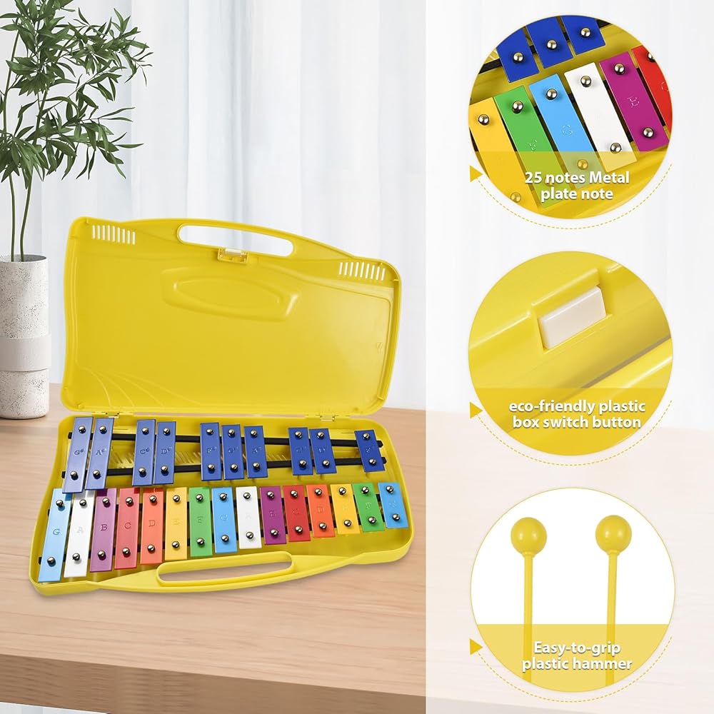 【Explore Musical Creativity】: With 25 beautifully crafted aluminum plates, our glockenspiel provides a wide range of melodic sounds. It's like having a mini piano at your fingertips, allowing users to better understand keyboard instruments.