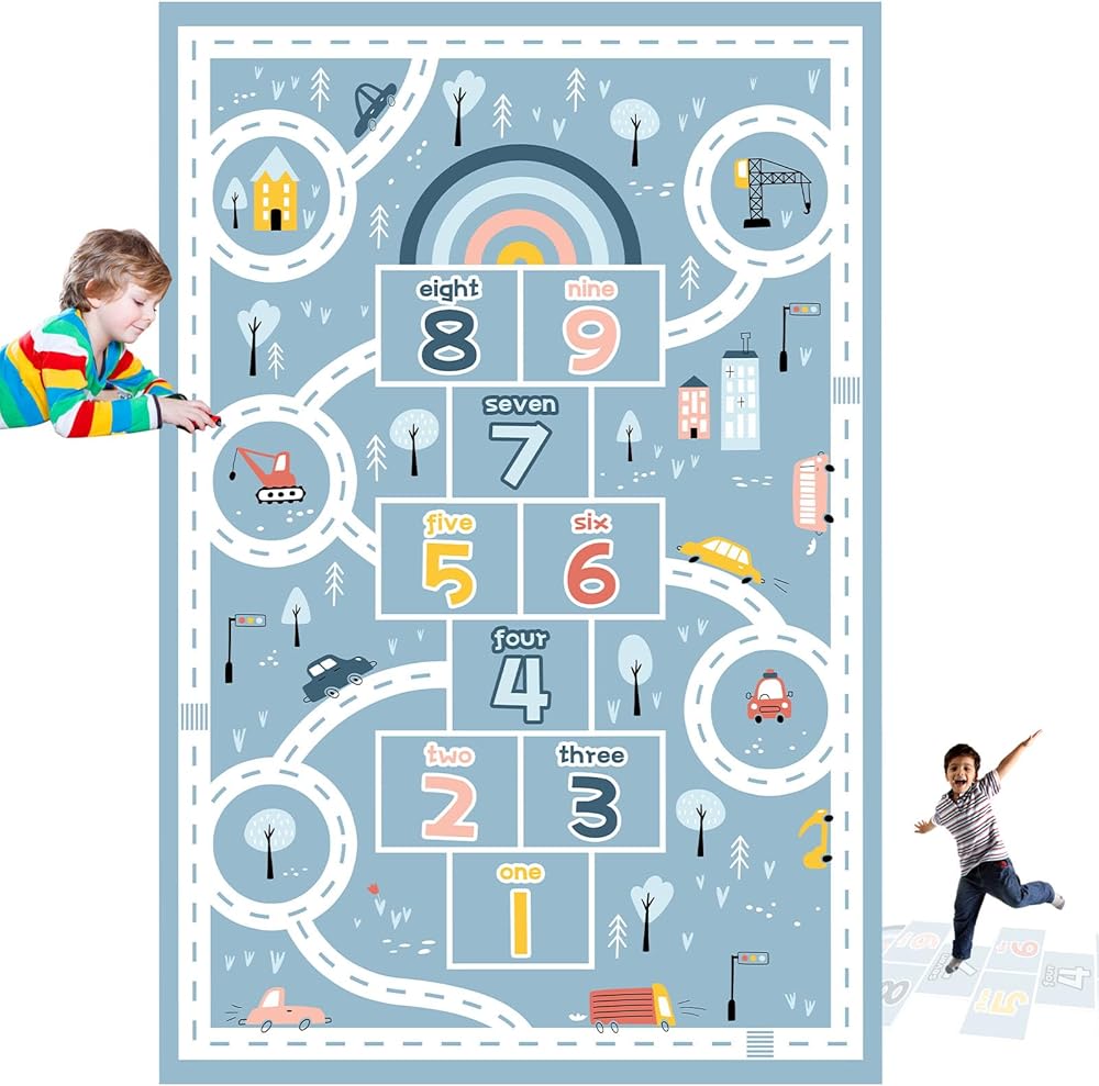 Hopscotch Rug, Hopscotch Mat for Kids Skipping and Jumping, Hop Count Cute Hopscotch Carpet with Non-Slip Backing,Suitable for Girls & Boys Bedroom, Playroom, Nursery(32×63inchs)