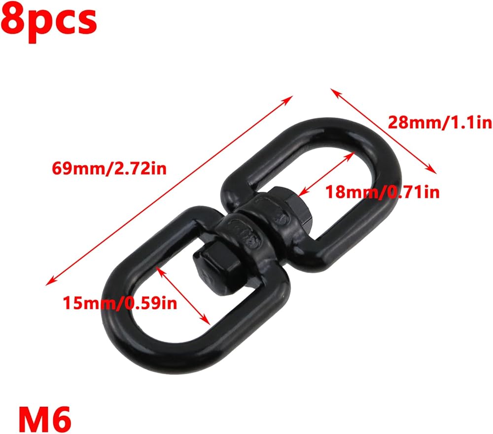These M8 double-ended swivel hook can be used for camping, hiking, fishing,walking,chain, wire rope, indoor /outdoor equipment,ect.