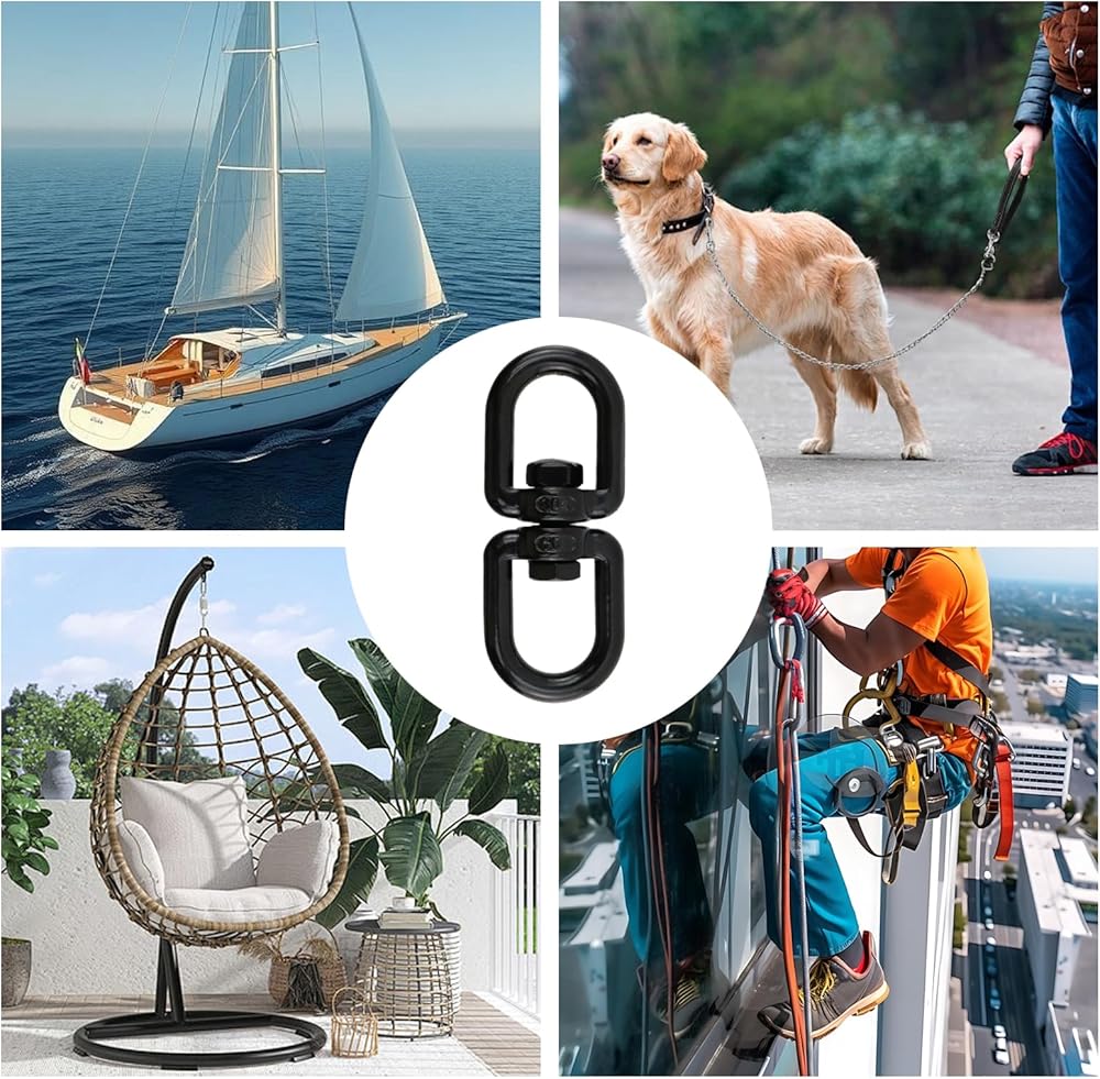 The 304 stainless steel double ended swivel eye hook can rotate 360 degrees,preventing any twisting or tangling.