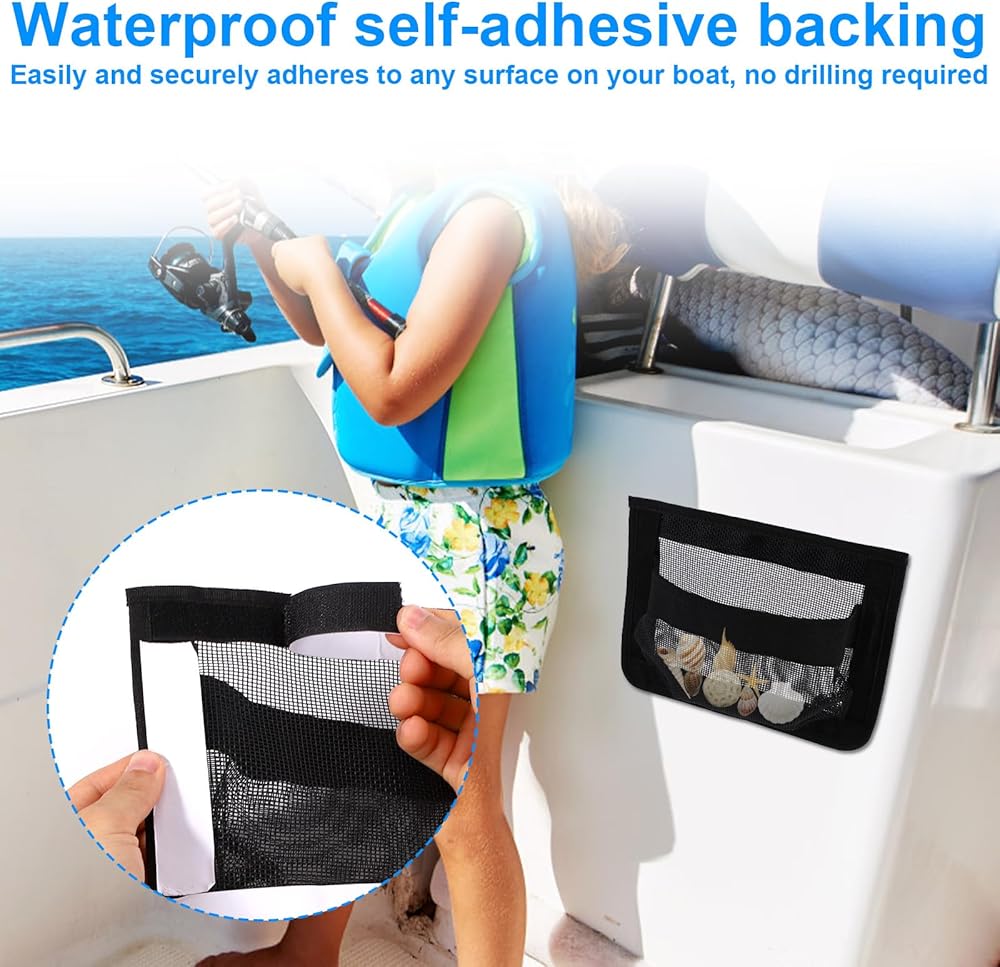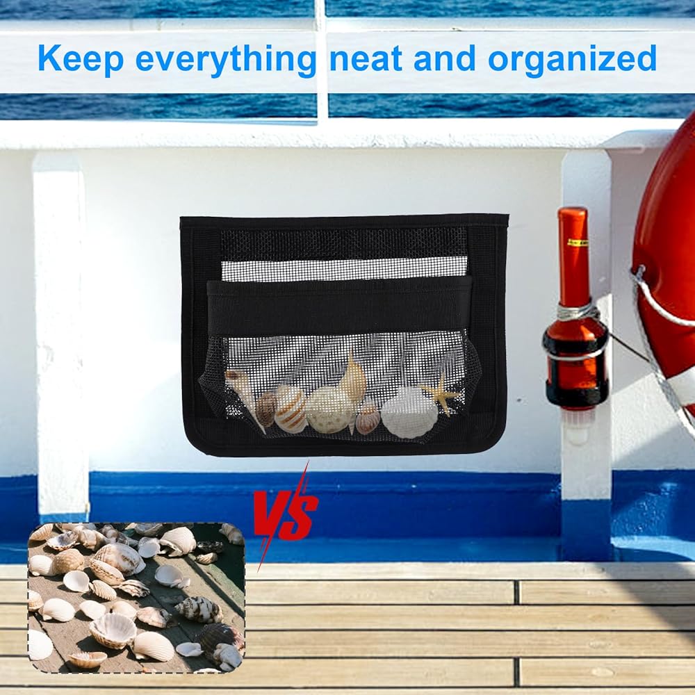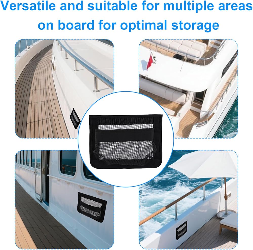 Package Content: You will receive two self-adhesive marine storage mesh bags, suitable for storing a variety of boat necessities, including tools, fishing gear, safety equipment and personal accessories.