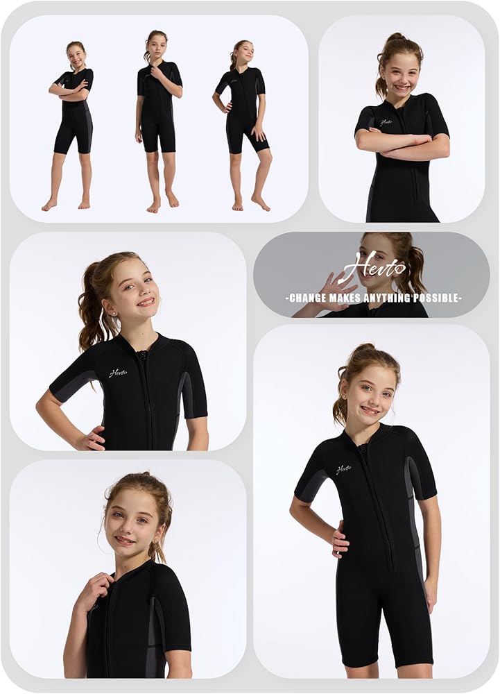 Unrestricted Movement: Ideal for active girls and boys, Hevto kids wetsuit provides a full range of motion for swimming, snorkeling, surfing, and more. The stretchy 2mm material allows your child to move freely, making it perfect for water activities where flexibility is essential.