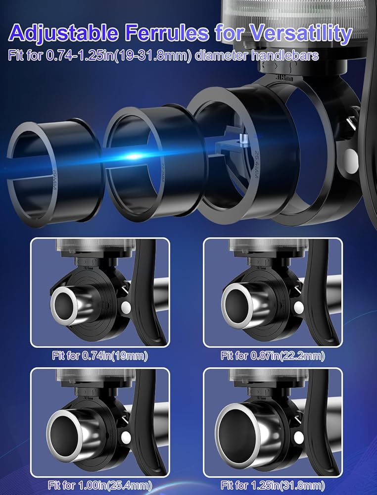 【Adjustable for Most of Handlebars】This bike accessories come with 3 ferrules and tool for adjusting to fit different sizes of handlebars range from 0.74in to 12.5in (19-31.8mm), being cool and stylish on most bicycles, tricycles, and scooters.