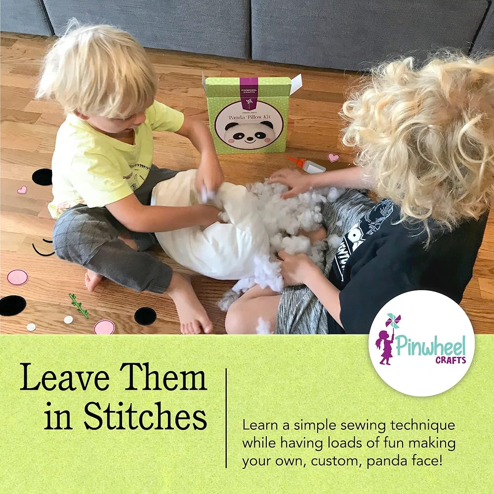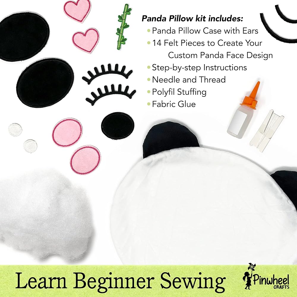 Pinwheel Crafts Beginner Sewing Kit for Kids 8-12 - Easy DIY Panda Pillow Kit - Learn to Sew - Kids Sewing Craft Gifts - Make Your Own Stuffed Animal Panda Plush Toy