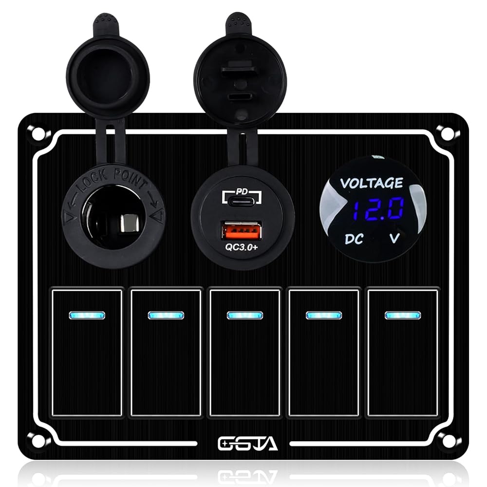【Multi-function designed】: 8 Gang Rocker Switch Panel is integrated with 8 rocker switches and dual USB charger with voltmeter, 12V/24V DC power socket and cigarette slot 4/6/8 on/off rocker switch.