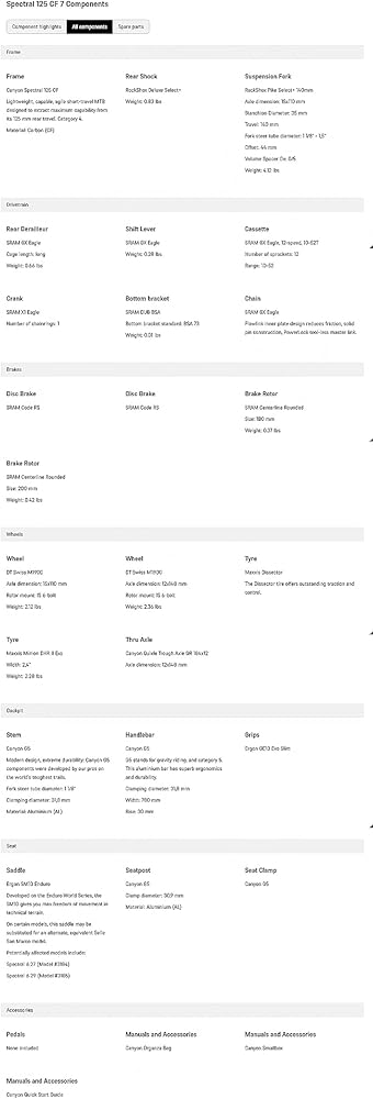 Ultimate trail machine – With carbon frame construction and high-performance suspension, the Spectral 125 CF 7 is the ideal ride for tackling technical terrain, maintaining speed, and enjoying every moment on the trail.