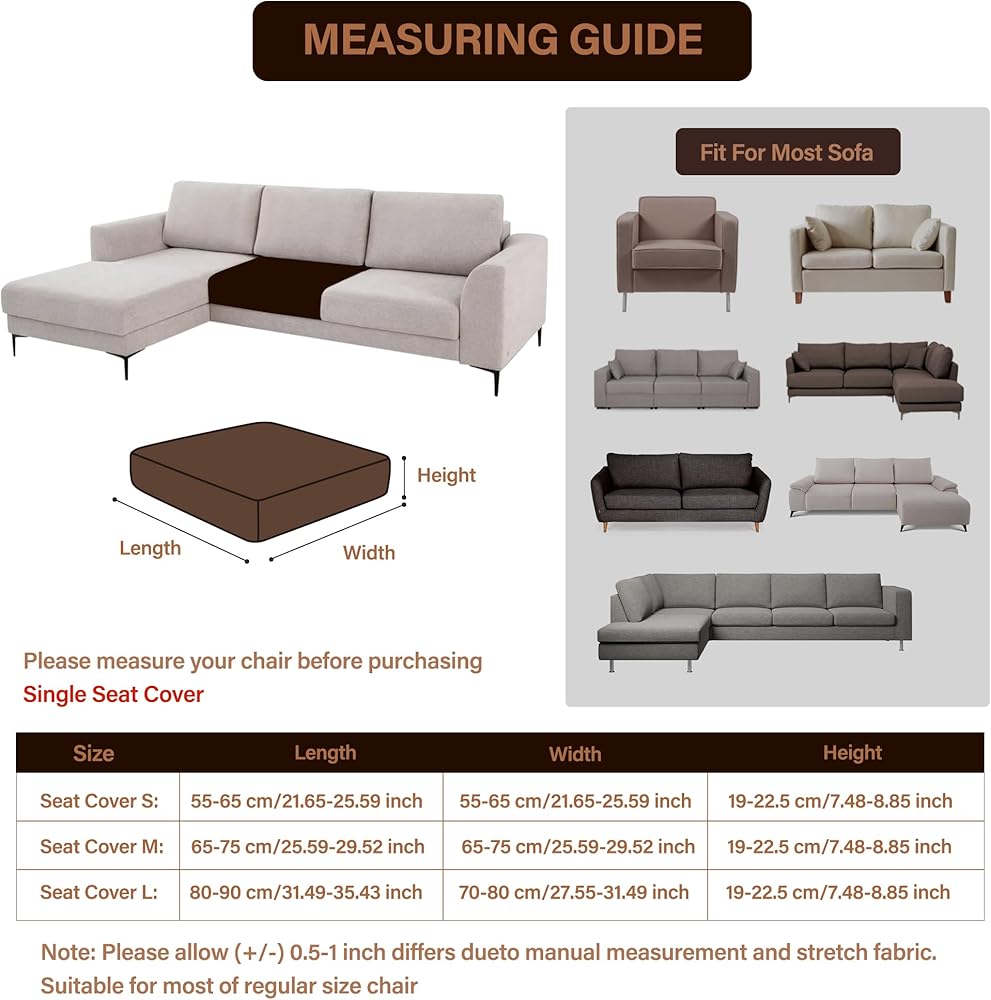 100% Waterproof Magic Sofa Cover: The Top fabric is processed with waterproof treatment, and the back coated with waterproof film, can guarantee the waterproof and leakproof effect. The CZL sofa cover is perfectly suited for sofas or patio cushions with regular square cushions, T-shaped cushions, and L-shaped cushions, not only for sofa seat cushions, but also for sofa backrests, as long as they can be separated from the sofa. Great choice for homes with children, pets.