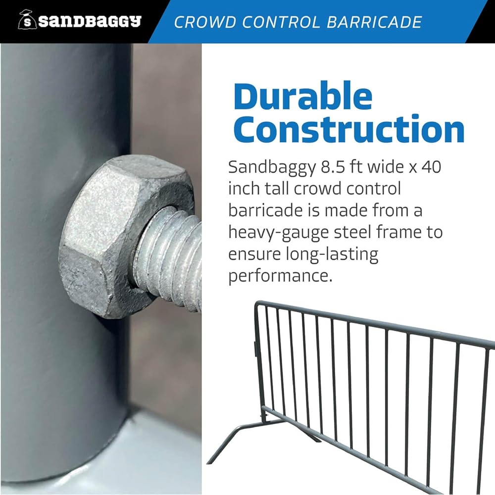 DURABLE CONSTRUCTION: Sandbaggy 8.5 ft wide x 40 inch tall crowd control barricade is made from a heavy-gauge steel frame to ensure long-lasting performance.