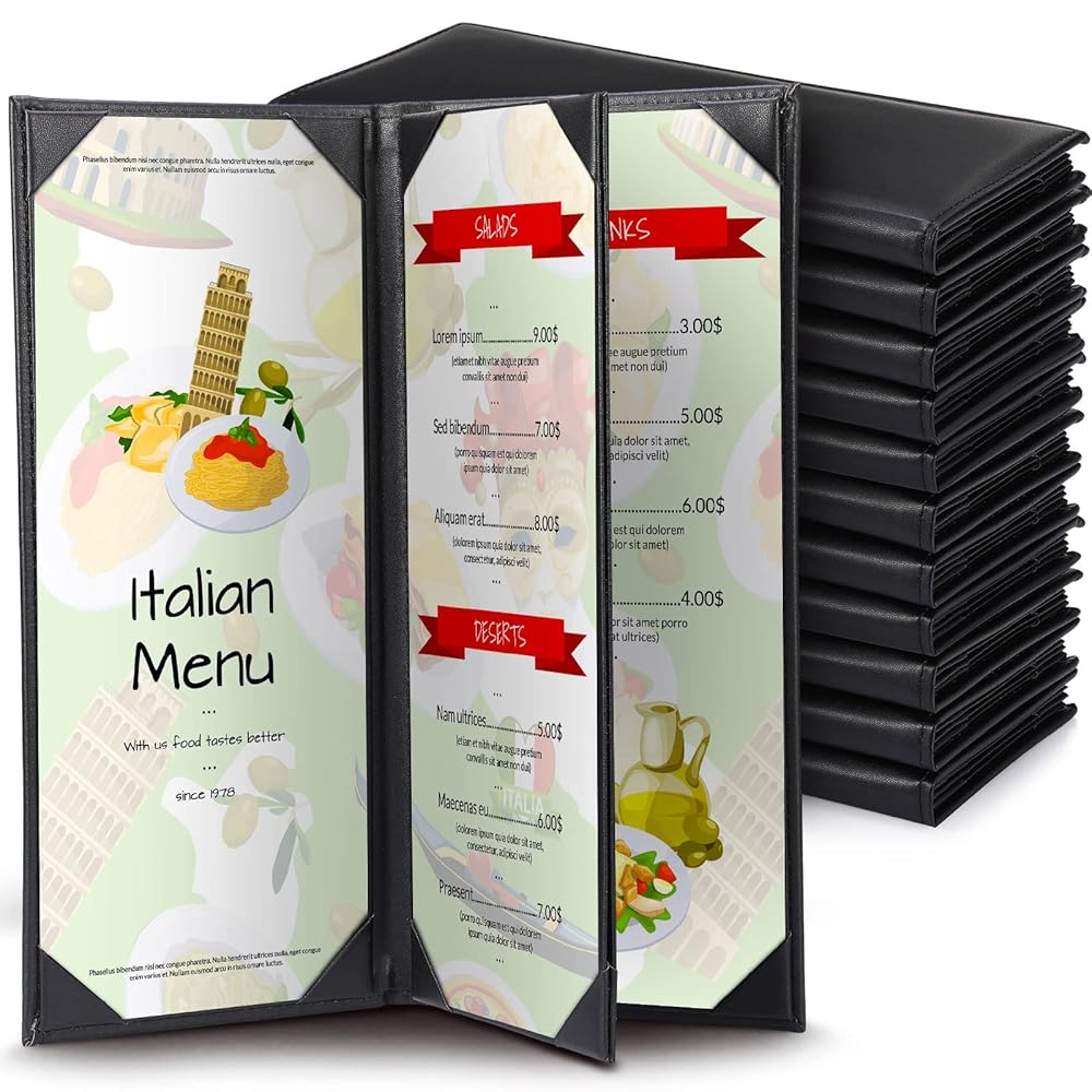 Simple Design: our 3 view waterproof menu cover is designed in black, which allows your guests to view the menu conveniently and keep the menu clean, upgrade your restaurant or cafe menu with this classic style menu cover book