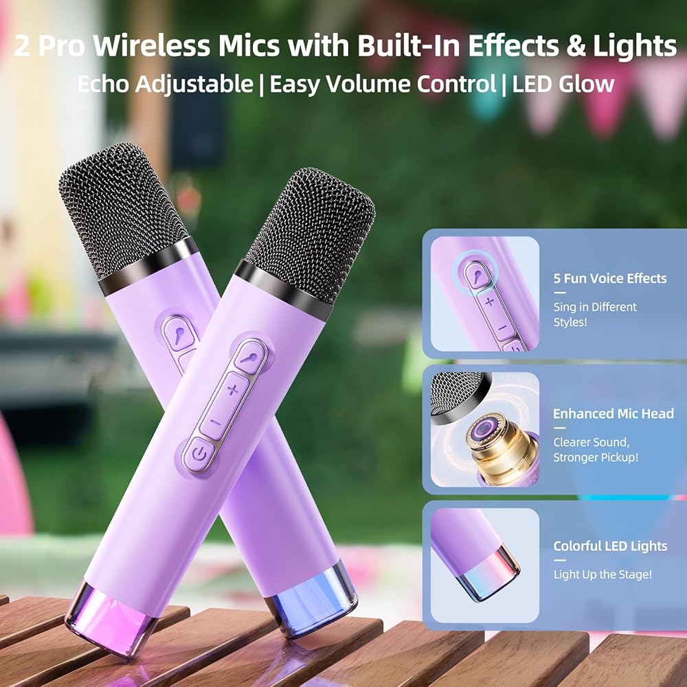 Upgraded Disco Lights + 5 Fun Voice Effects (More Features = More Fun!): Most karaoke machines come with basic lighting, but our LED disco lights sync to the beat for a real concert experience! Plus, we've added 5 exciting voice changers (Robot, Alien, Chipmunk, Monster, and Karaoke Mode) to spark endless creativity.
