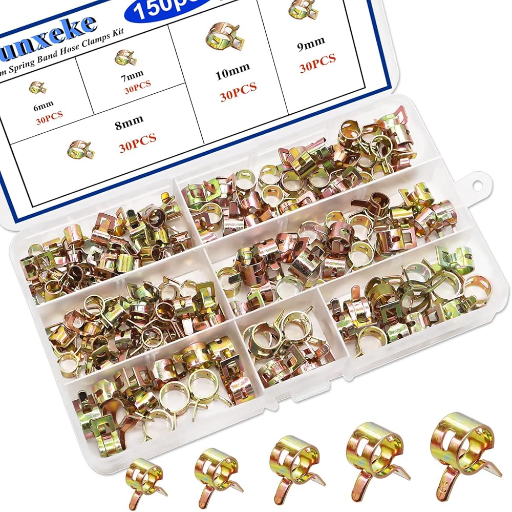 150-piece fuel line clamp kit – Includes 150pcs 5 sizes (6mm 7mm 8mm 9mm 10mm). Never search for the right size mid-repair with our organized plastic case