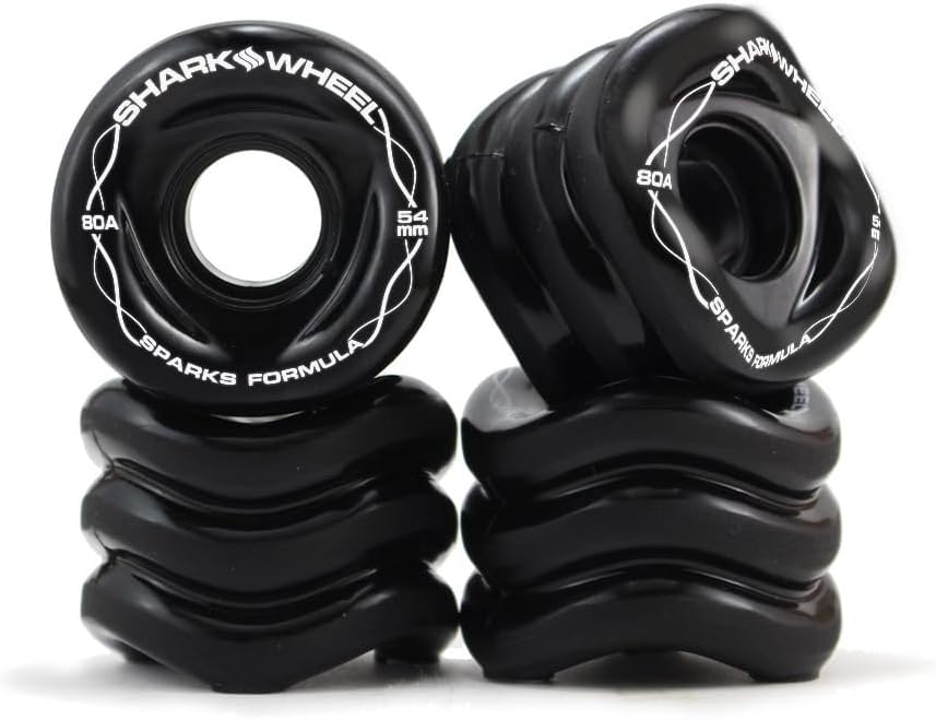 Shark Wheels are all-terrain wheels that offer high performance, long-lasting durability, and are made in the USA. They are perfect for skating on any surface, including rocky roads, parks, beaches, ramps, and rails. The unique wave pattern of the wheels helps to deflect debris and obstacles, so you can keep on rolling. Shark Wheels are made with quality in mind and are built to last. They are also made in the USA using the best local materials.