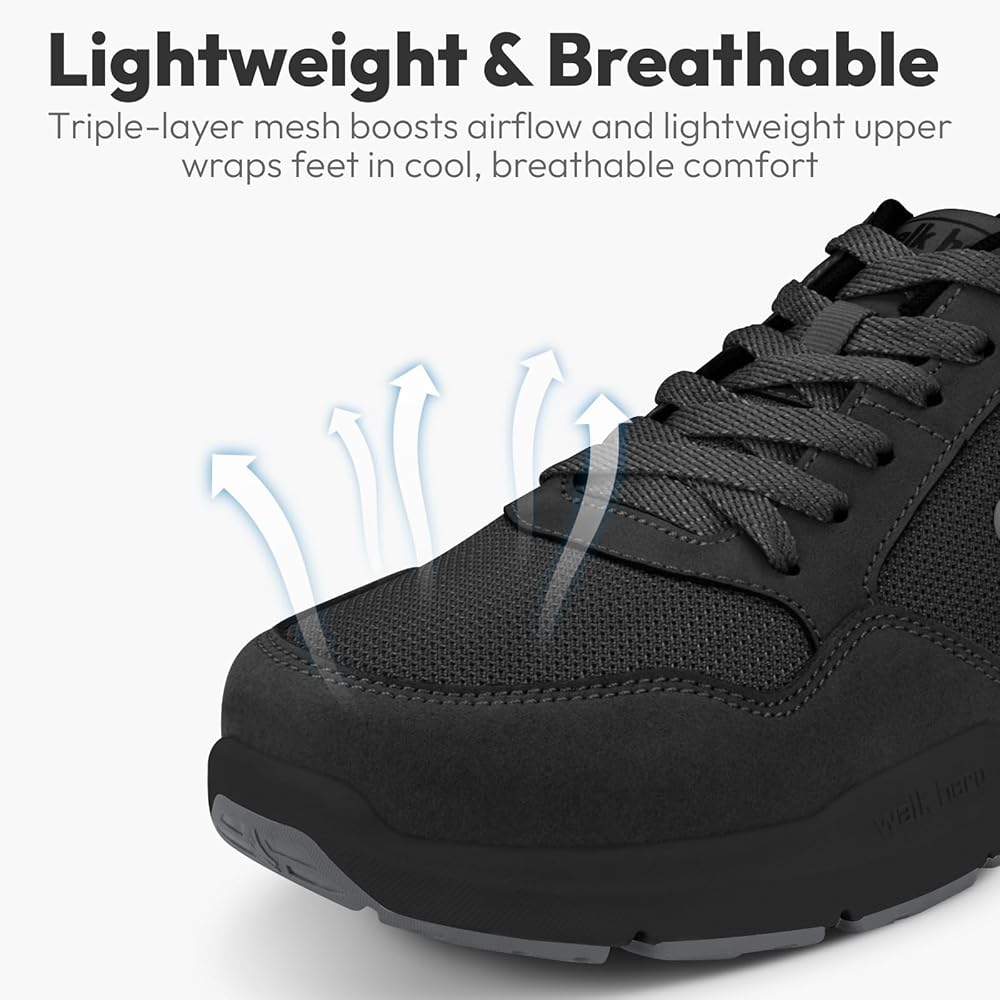 TRIPLE-LAYER MESH - BREATHABLE COMFORT: Triple-layer mesh upper promotes airflow and moisture control to keep feet fresh. The soft lining is gentle on sensitive skin, making our running shoes men ideal for daily wear, active recovery or long workdays