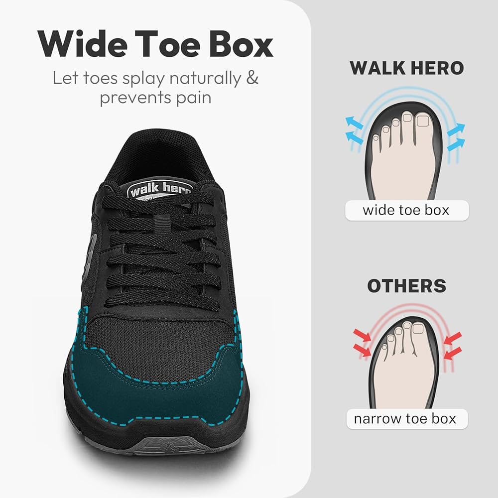 WIDE-TOE BOX - RELAXED FIT: Give your toes room to breathe! The spacious toe box allows natural movement and relieves pressure. Ideal for those with bunions, hammertoes or swollen feet, our wide toe box shoes for men deliver lasting comfort