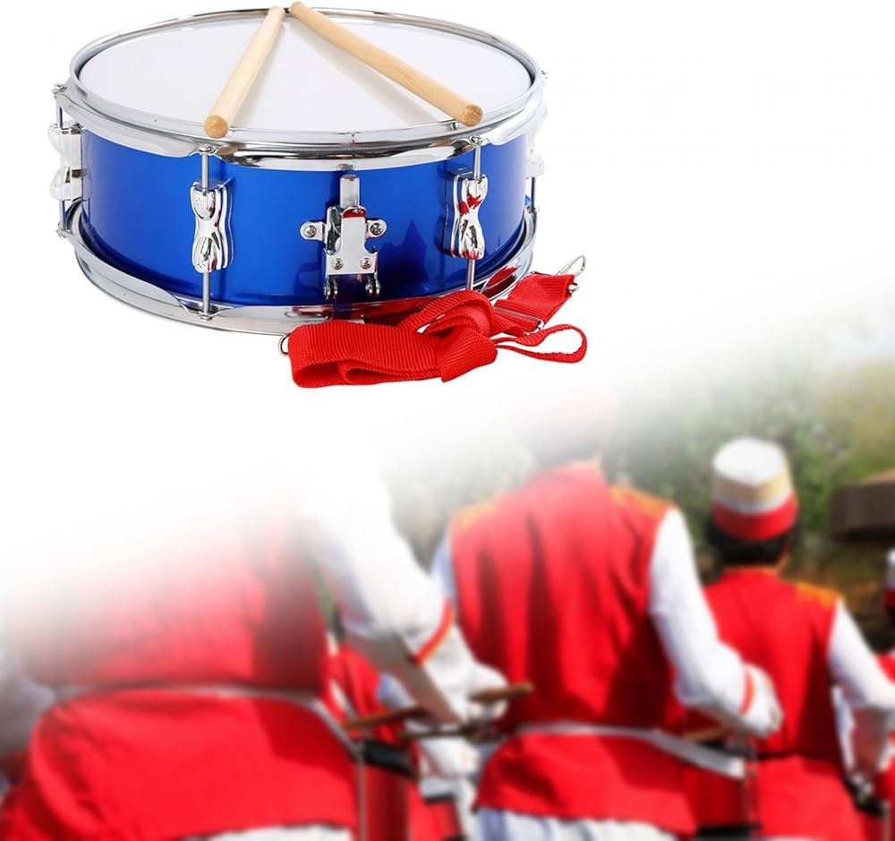 - 【Package Includes】: 1x 13inch snare drum 1x drum belt, 1x pair drumsticks.