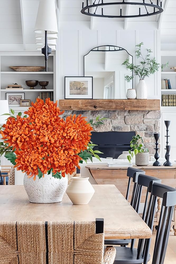SUITABLE FOR MANY OCCASIONS: Artificial chrysanthemums are suitable for flower arrangements, centerpieces. Great for home decor, weddings, offices, patios, gardens, coffee tables and anywhere else you want to decorate. It is also a perfect gift for parents and friends.