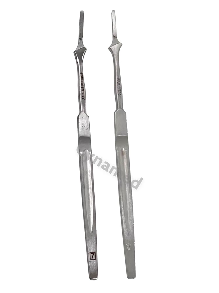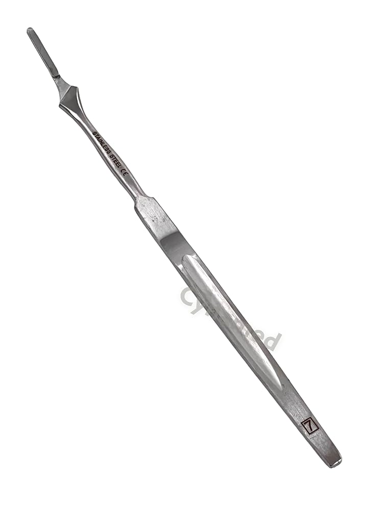1 Piece: Scalpel Handle #7 Bent + Scalpel #7 Straight - Suitable for Dissections, Crafts, and More. (Fits Blades #10, #11, #12, #15, #16). A scalpel handle #7 is a reusable surgical instrument commonly used with #10, #11, #12 or #15 scalpel blades. It is designed for delicate dissecting and surgical procedures.