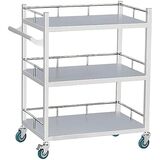 - Sturdy 3 Shelves: Our laboratory cart offers ample space to store medical and lab equipment. The generous distance between shelves effortlessly accommodates large items, while the built-in guardrail prevents any accidental falls. Trustworthy and reliable.