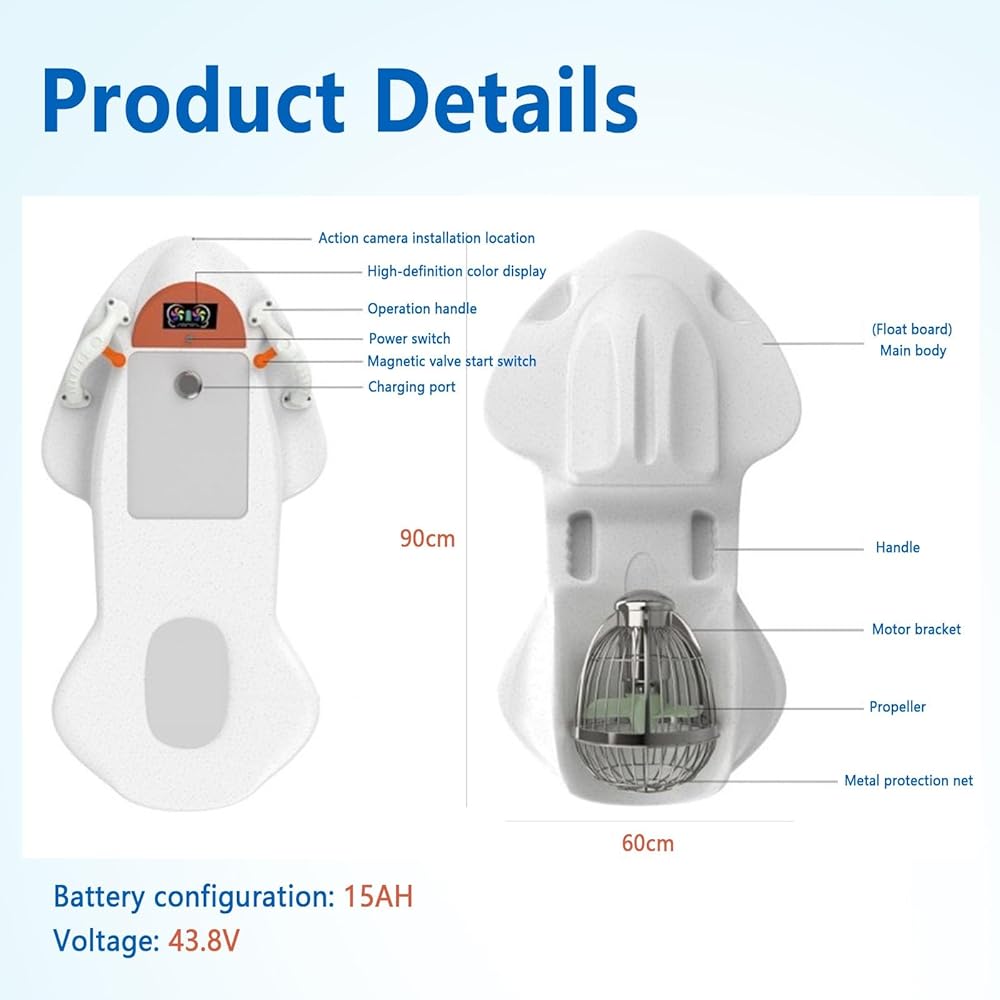 Electric Surfboard: The scooter surfboard has automatic detection and automatic protection. When an emergency occurs, there will be an alarm message to provide users with the best safety protection.excellent features, emergency buoyancy after power failure and magnetic switch design for reliability and waterproof.