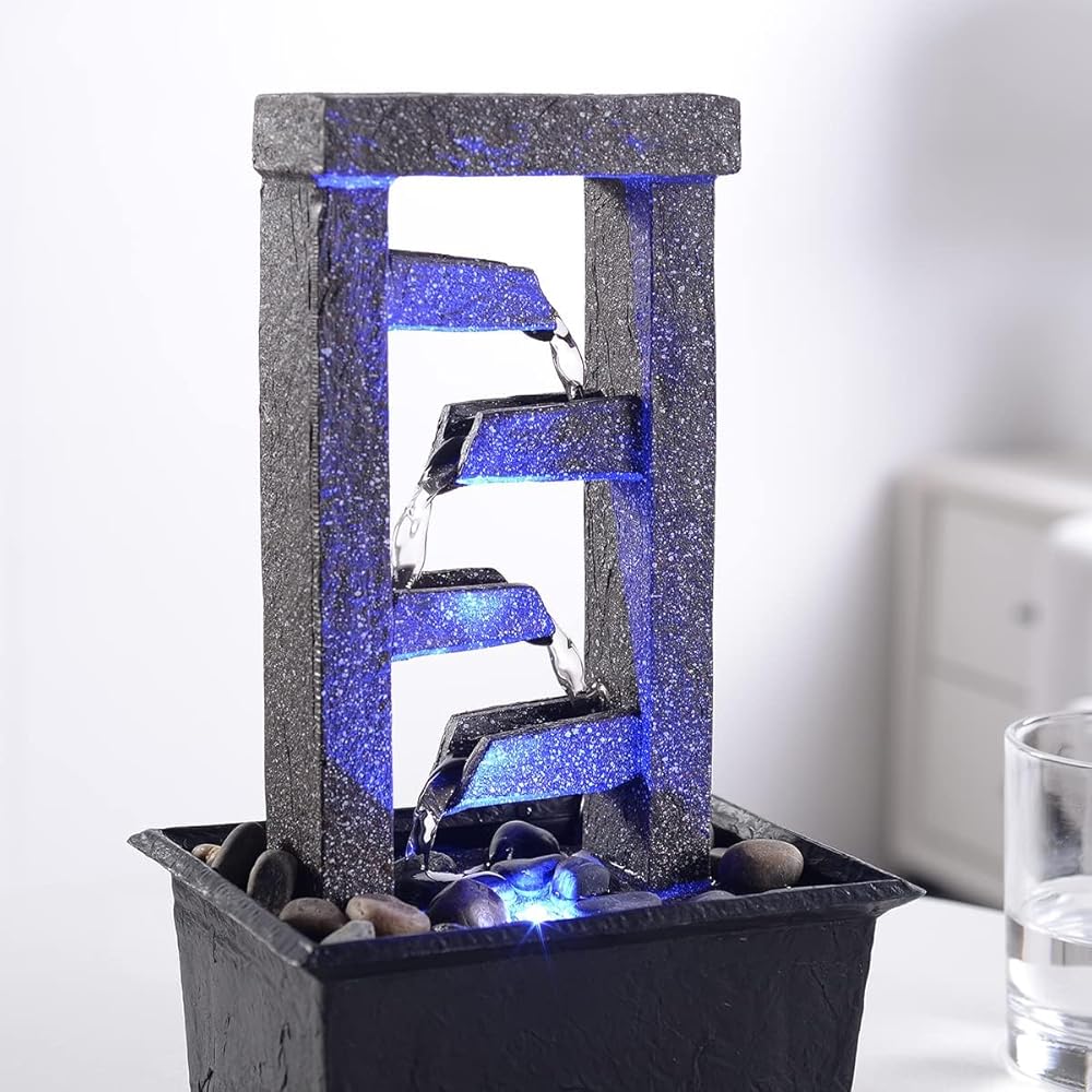 Ease to use: Assemble the fountain and then no plumbing is required, simply add water to the fountain and plug in to a standard electrical outlet