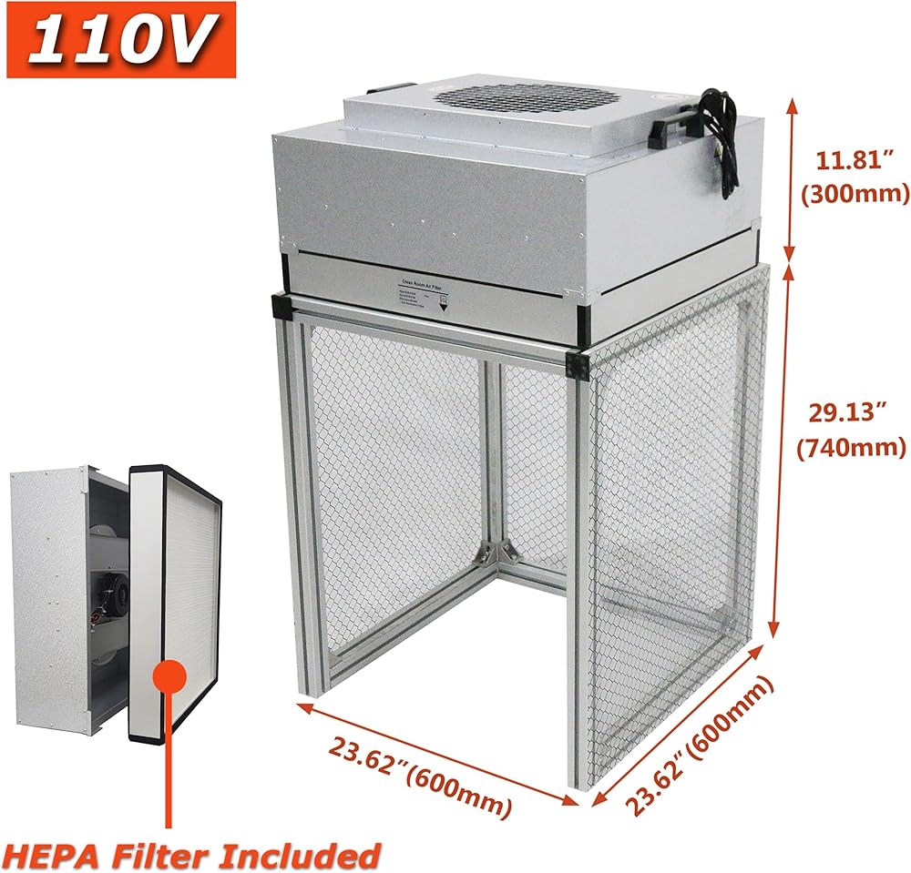 INTSUPERMAI 110V Vertical Laminar Flow Hood Air Flow Clean Bench with HEPA Filter for for Class 100 Aluminum Fan Dust Free Room Workshop 23.6×23.6×29.1inch