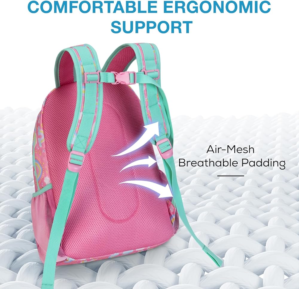 Comfortable & Lightweight: The weight of the kids backpack is only 1.3lb. Adjustable padded breathable mesh shoulder straps offer support and comfort while the adjustable chest strap stabilizes the load throughout the day's activities. Ergonomic design can take good care of your child's spine