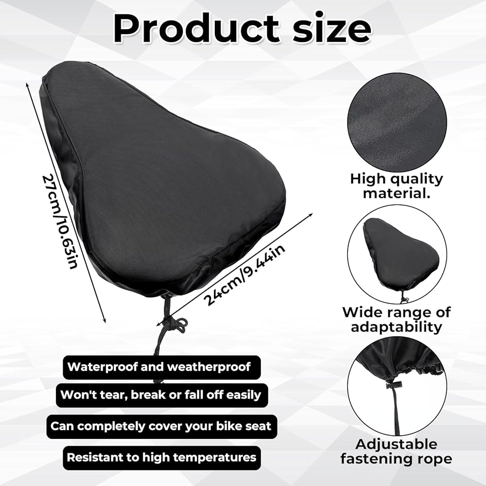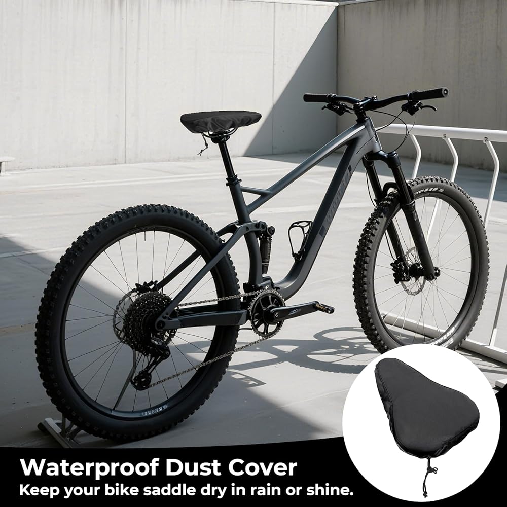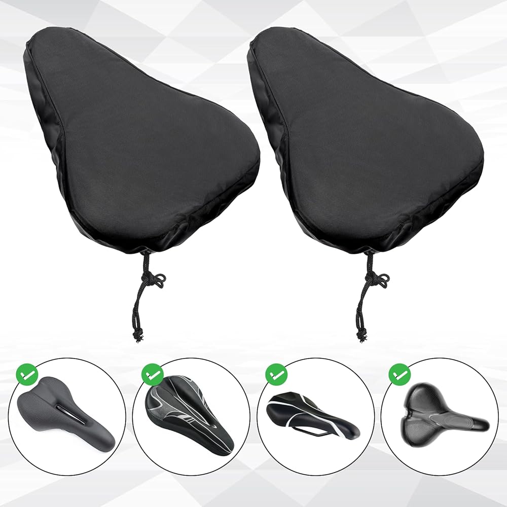 Hassle-Free Maintenance: Wipe-clean surface dries instantly. Waterproof bicycle seat cover Includes 2 covers for rotation – use one while cleaning the other. Extends saddle lifespan by preventing mold, fading, and weather damage year-round.