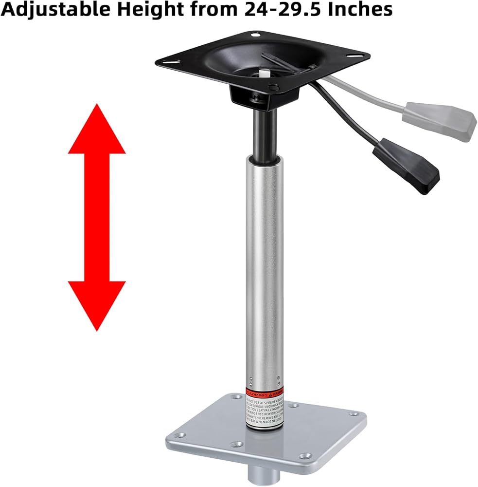 Upgraded Height-Adjustable Base: The 7" x 7" boat seat pedestal is a base for mounting boat seats with standard non-threaded 3/4" boat seat pin post(1.77" diameter) & adjustable boat seat power pedestal with integral seat mount. (Adjustable height from 14-19 inches)