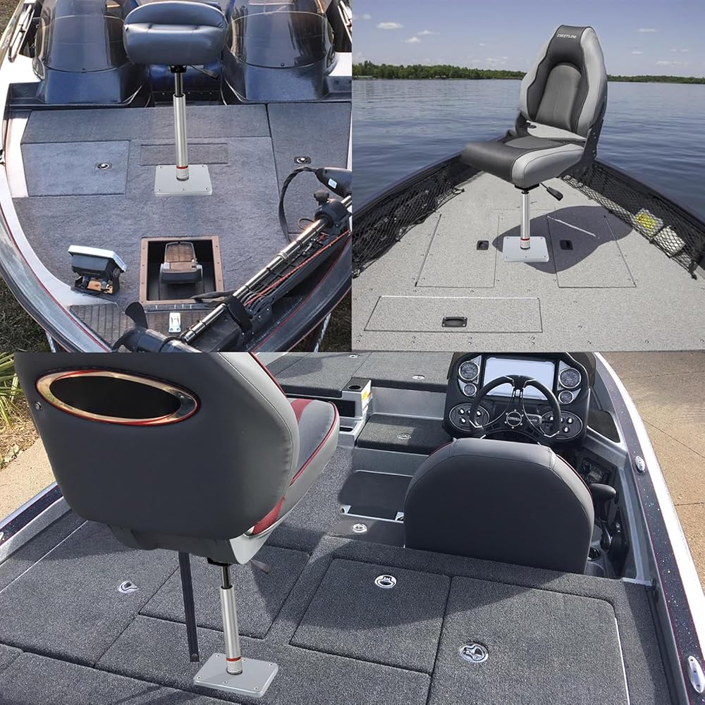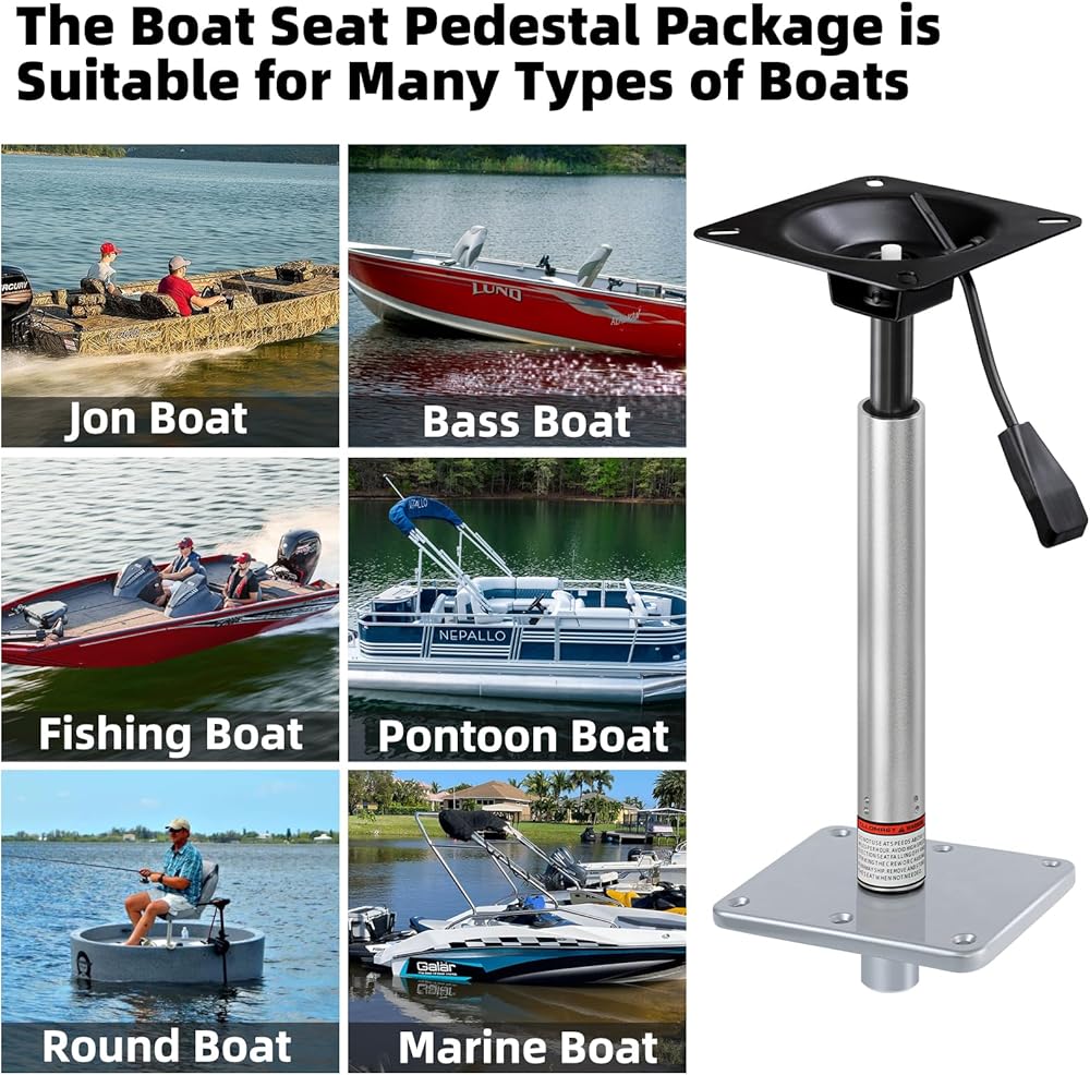 Great Addition for Boat: The boat seat base pedestal kit replaces existing boat seat & add seats on the boat deck, perfect for most marine/pontoon/fishing/bass/jon/cruising boat. Allowing you to have boat seat accessories to enjoy fishing boating time.