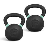 SOLID CAST IRON: Strength training kettlebells are constructed from solid cast iron with no welds, weak spots, or seams; The powder coating prevents corrosion and provides a better grip, eliminating the slipping common with glossy finishes