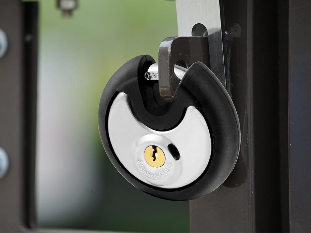 Heavy Duty and Weatherproof Lock - The DAYGOS disc padlock is made of 304 stainless steel, which is resistant to rust and corrosion and can withstand all types of weather. The rubber bumper protects the lock from scratches and extends its life. It is simple to lock and unlock.