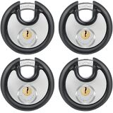 DAYGOS Outdoor Padlock for Storage Unit, Waterproof Stainless Steel Disc Lock with Rubber Bumper for Sheds,Gate and Fence, Heavy Duty Keyed Pad Lock (3/8-Inch Shackle)