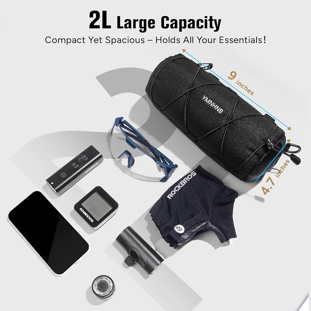 Spacious Storage Capacity – Measuring 9*4.7*4.7inches, this bike handlebar bag offers ample space to store essentials like your phone, flashlight, power bank, wallet, keys, and other cycling gear.