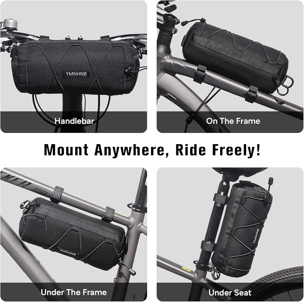 Versatile Mounting Options – Not just for handlebars! This bike pouch bag can also be installed on the bike frame, under the seat, or even on the rear rack, offering multiple setup options.