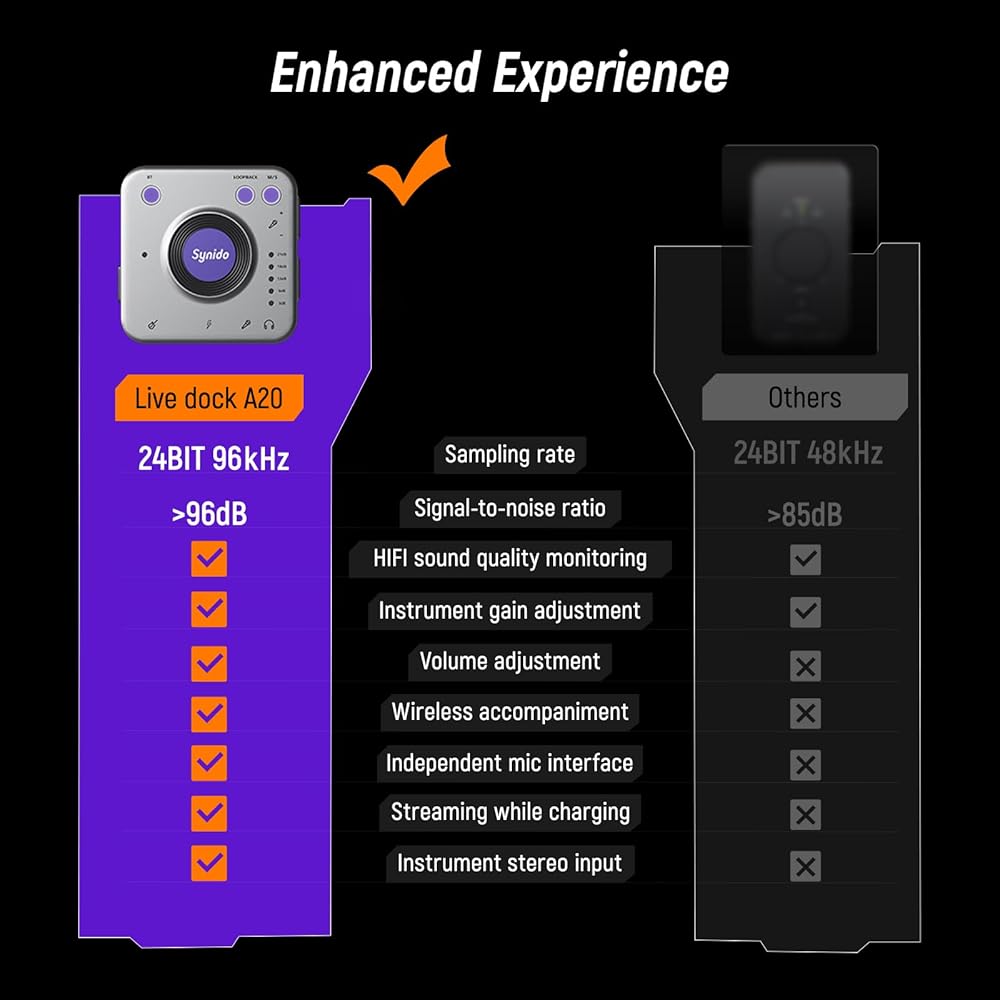 [High-Fidelity Audio] Our mini guitar audio interface features studio-grade 24-bit/96kHz (superior to others) resolution to capture every note, chord and nuance of your performance. Dual core chip and sound processing system let you experience pristine audio quality and say goodbye to distracting delays and noise