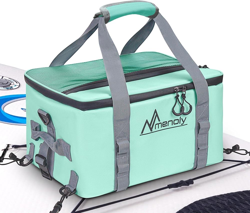VERSATILE CARRYING OPTIONS - Our sup cooler for paddle board is designed with your comfort in mind, with a padded top handle that provides a ergonomic grip, minimizes hand fatigue during extended carries. Strategically placed robust side handles offer exceptional flexibility and control for quick lifts, easy loading, or navigating tight spaces. For true freedom, utilize the fully adjustable, padded shoulder strap for comfortable, hands-free carrying.
