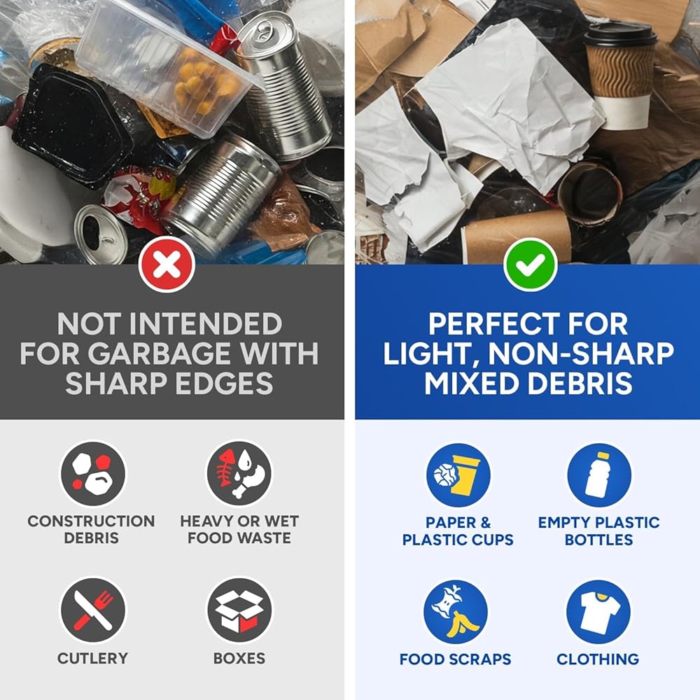 Heavy Duty Garbage Bags: Made with a 13 micron thickness, these 33 gallon trash bags heavy duty are designed to handle heavy or sharp items. This extra thickness makes them durable and reliable for disposing of various of waste, including food scraps, yard waste, and office debris.