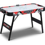 c Bring the excitement of an air hockey tournament right into your home with this folding air hockey table. Its compact design allows for easy setup and storage, making it perfect for game rooms or family gatherings. The powerful motor creates a smooth gliding surface, while the LED electronic scoring keeps track of the action. Two pucks and pushers are included, so you can challenge friends and family to intense matches. With its sturdy construction and light-up scoreboard, this air hockey table promises hours of competitive fun for adults and kids alike. Unleash your skills and experience the thrill of air hockey anytime, anywhere.