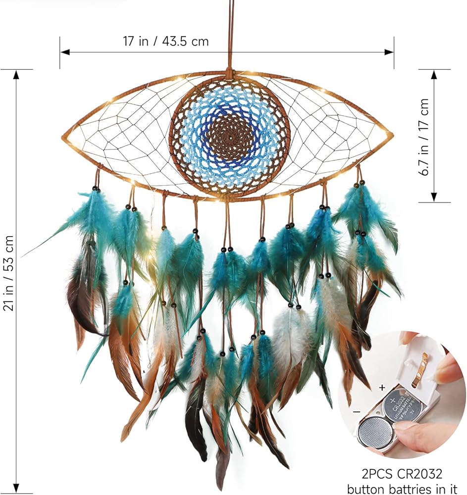 ★【Unique Evil Eye Design】The evil eye means to protection and keep out ominous things. Our dream catcher uses evil eye design and fairy lights to add warmth to your room and bring sweet dreams to your family.
