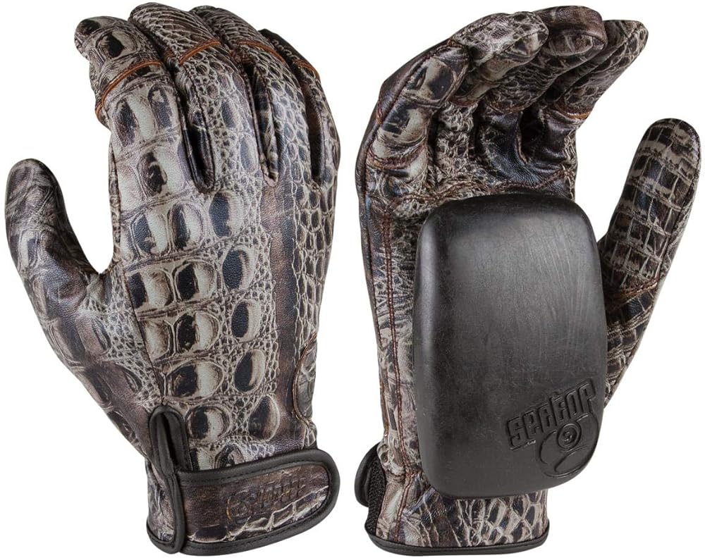 sector 9 mens size small/medium longboard slide gloves. Nice jungle print leather gloves with nice rounded pucks by the best, Sector 9.