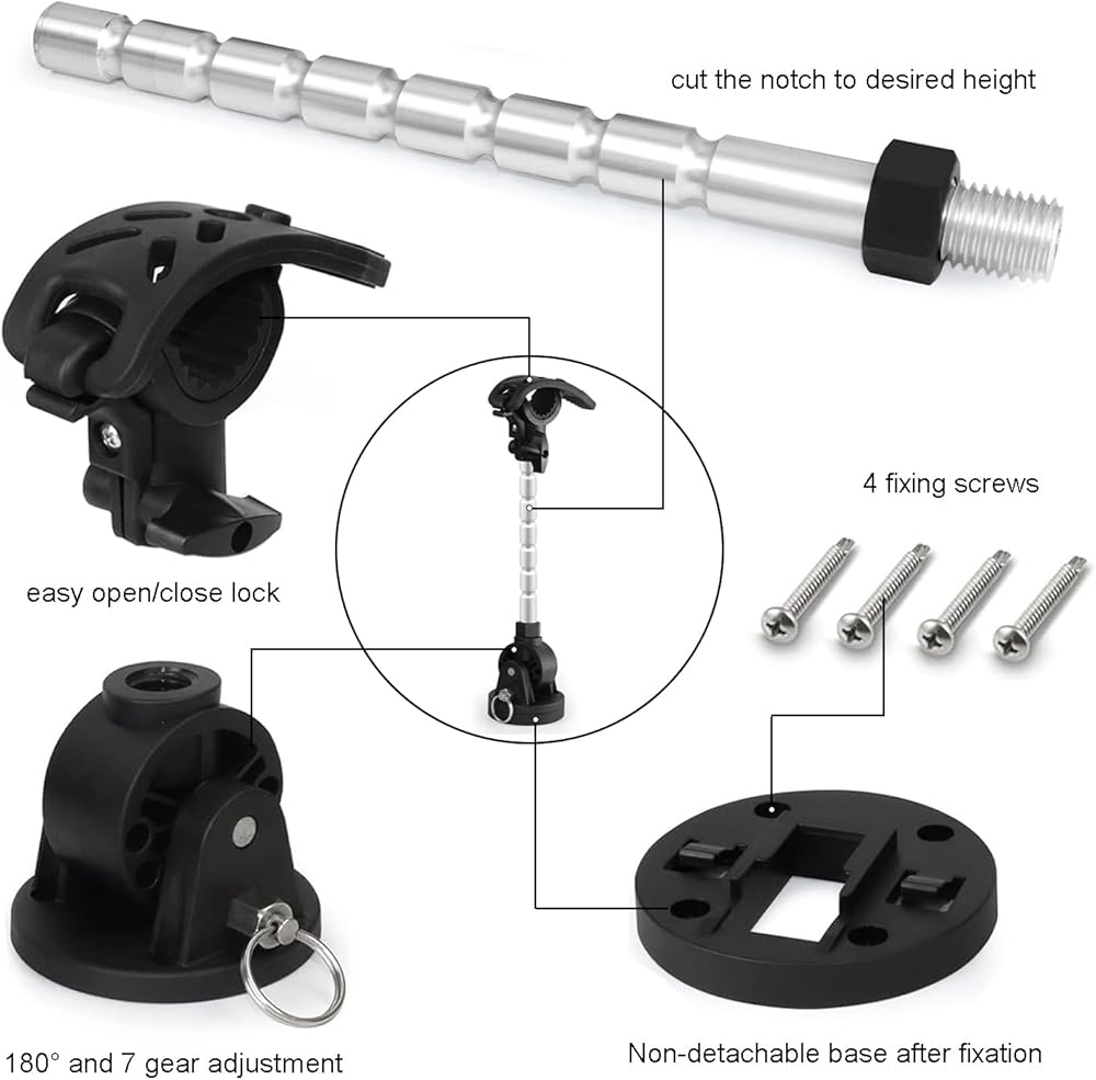 【Technical & Precise】Adjustable Customization: Tailor the trolling motor mount to your exact needs with a height-adjustable design—simply trim to fit your motor's installation requirements. The stabilizer provides 7 angle settings (up to 180°) for precise positioning, optimizing performance on the water.