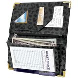 Server Book with Zipper Pocket, High Volume, Expandable Server Book, Money Pocket and Fold, Restaurant Waitstaff Organizer Fit Server Apron with High Volume Pocket (Leopard-Black)
