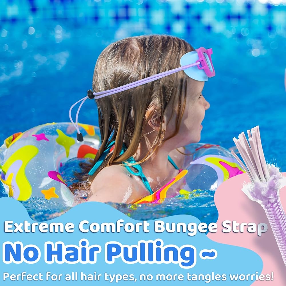 【Tangle-Free & Independence in Seconds!】 The smooth bungee strap glides through hair without snags or pulls – perfect for thick, curly, or long hair! With the one-click adjustable buckle, even 3-year-olds can put them on solo. Stays securely in place, so kids focus on fun, not fussing with straps!