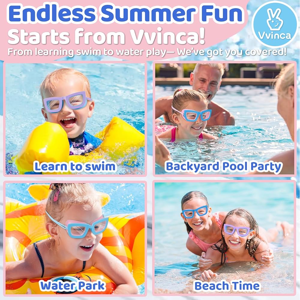【 Let your kids be a pool star!!】 Designed for kids aged 3-10! Vvinca goggles combine sporty aesthetics with ergonomic contours,stylish and comfortable.Perfect for boosting confidence, your little one will shine like a "poolside superstar" during swim lessons, beach days, or backyard splashes!