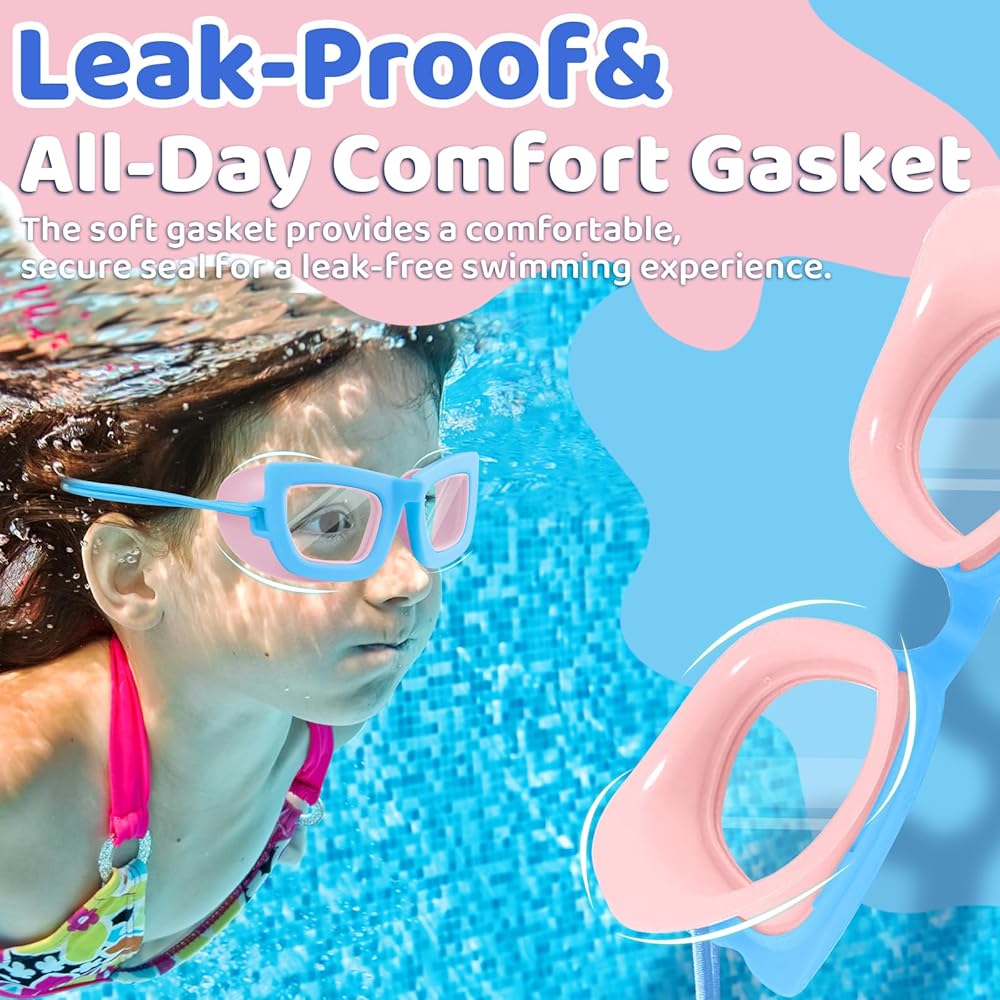 【Zero Leaks, Zero "Raccoon Eyes】 No more tears from water leaks! Our baby-soft silicone gasket molds gently to all face shapes (round, narrow, or in-between) for a perfect, comfy seal. Whether diving, flipping, or cannonballing, their eyes stay dry and no raccoon eyes – even after hours of play!