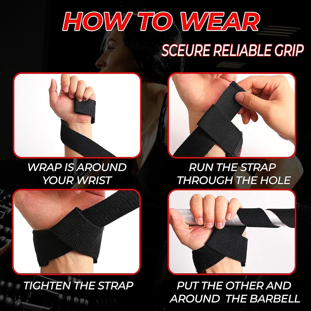 EASY TO USE: - Simply wrap the lifting straps around your wrists and the bar for a secure hold. The adjustable nature of these gym wrist straps ensures they stay in place throughout your workout, providing consistent support and grip.