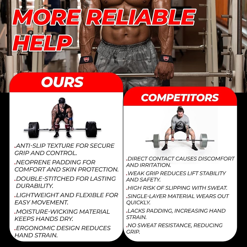 COMFORT AND PROTECTION: -The neoprene padded straps offer maximum comfort, reducing the risk of blisters and calluses during heavy lifting. Provides excellent wrist support, making these lifting support straps essential for anyone serious about their strength training.
