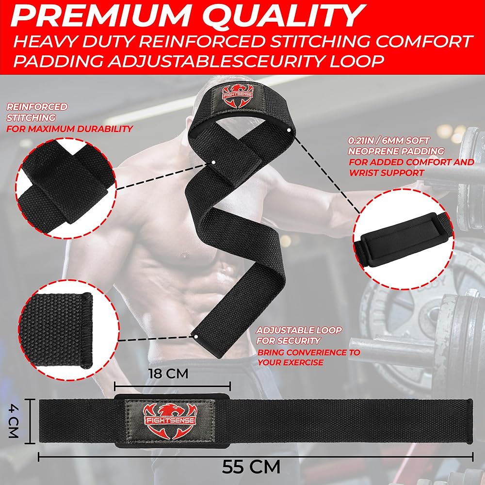 FIGHTSENSE Lifting straps for weightlifting, Gym wrist straps for men women, Neoprene Padded Cotton Weightlifting Straps for Bodybuilding, Powerlifting, Deadlifting and strength training