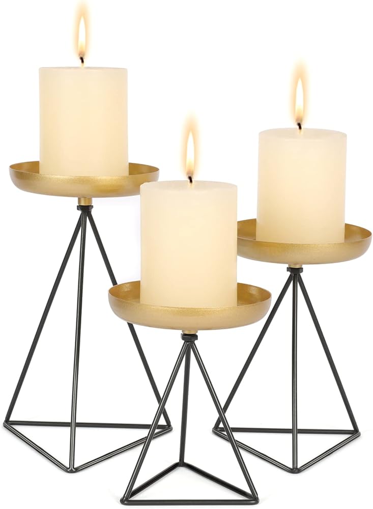 Geometric Candle Holders for Pillar Candles, Set of 3